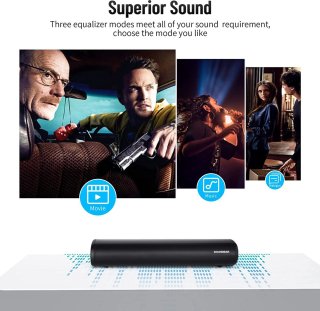 De soundbar heeft een ingebouwde subwoofer en levert samen 30 W uitgangsvermogen (15 W per kanaal), wat voor klein tot gemiddeld gebruik in slaapkamers en woonkamers voldoende bas oplevert. Voor echte diepe laagweergave in grote woonkamers of voor filmliefhebbers kan een losse subwoofer meer impact geven, maar voor compact gebruik is de ingebouwde bas vaak voldoende.
