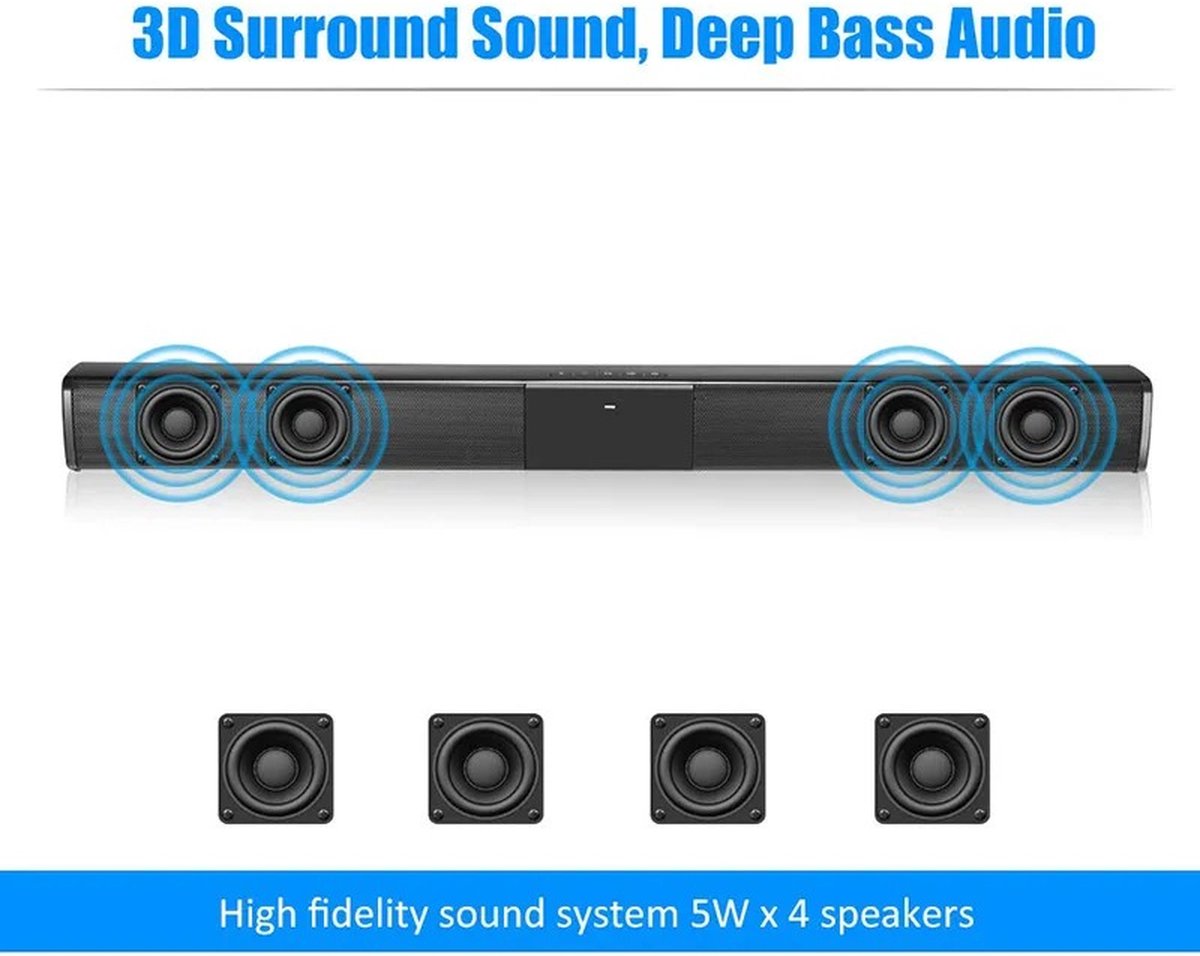 Of je nu een filmavond wilt organiseren, losse muziek wilt beluisteren of je favoriete game speelt, deze TV Soundbar brengt alles naar een hoger niveau. Bestel vandaag nog en ervaar hoe krachtig en helder geluid jouw kijk- en luisterplezier kan verbeteren. Jouw ultieme audiobeleving wacht!