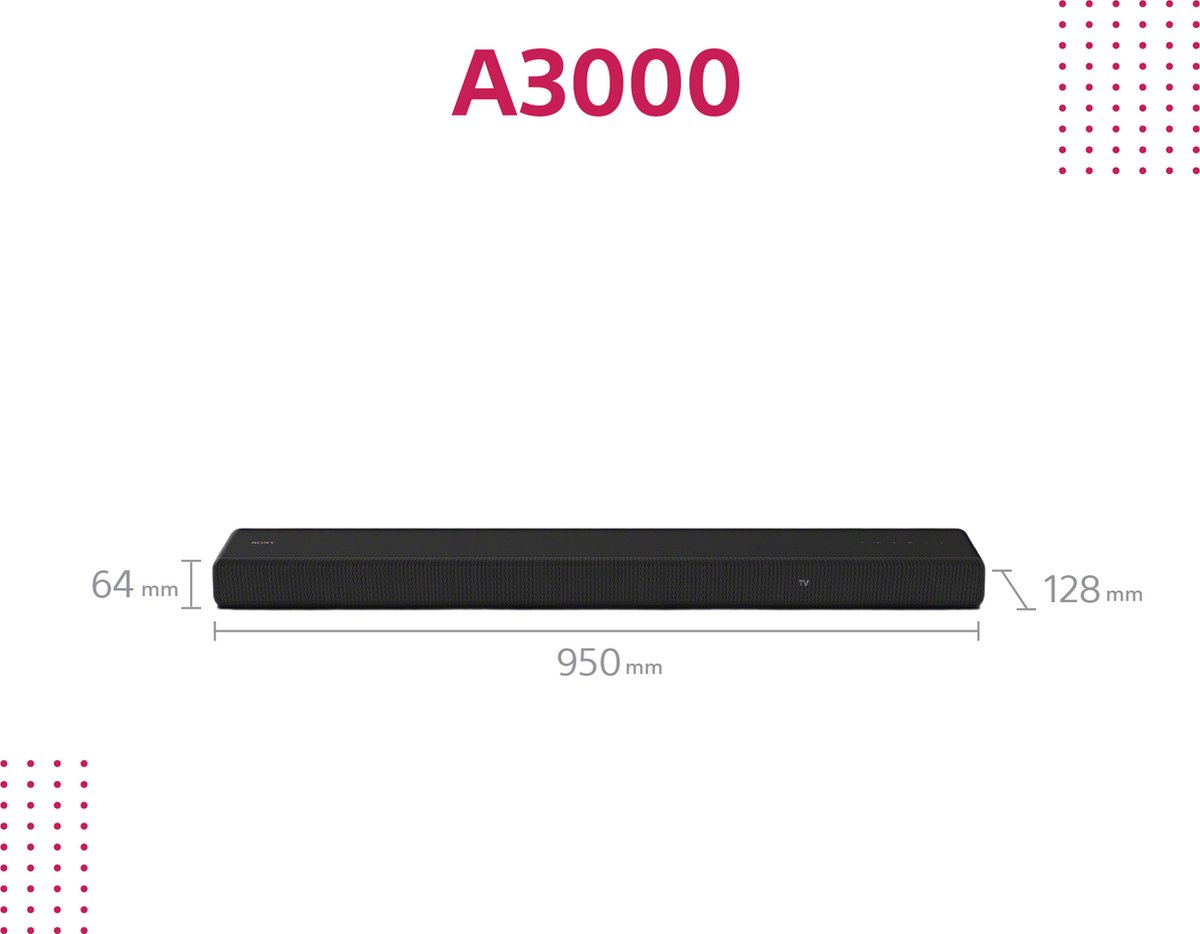 Breng je thuisbioscoop naar een hoger niveau met de stijlvolle en krachtige Sony HT-A3000 Soundbar. Dankzij geavanceerde audiotechnologieën, een minimalistisch ontwerp en slimme functies ervaar je Dolby Atmos en 3D-geluid dat je midden in de actie plaatst. Of je nu films, series, muziek of gaming kijkt, deze soundbar zorgt voor een meeslepende ervaring die je niet snel zal vergeten.