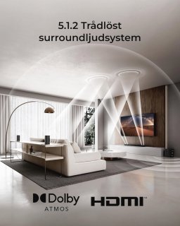 - Ruimtelijk Dolby Atmos-geluid: de 5.1.2-configuratie plaatst geluid boven en rondom je, voor een meeslepende luisterervaring.