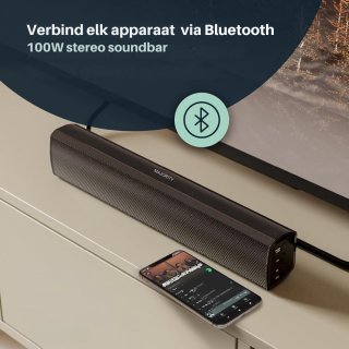 - Krachtig geluid (100W): voldoende vermogen voor een duidelijk en vol geluid in middelgrote tot grote kamers.