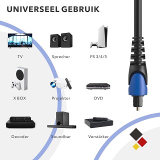 Verbind moeiteloos je soundbar of stereo-installatie met tv's, Blu-ray- en dvd-spelers of spelconsoles (PS4, Xbox) met deze 3 meter lange optische Toslink-kabel. Geniet van een zuiver, ruisvrij audiosignaal en haal het maximale uit films, games en muziek dankzij de lossless overdracht van multikanaalsformaten zoals 7.1, Dolby TrueHD, Dolby Digital, DTS en DTS-HD Master Audio.