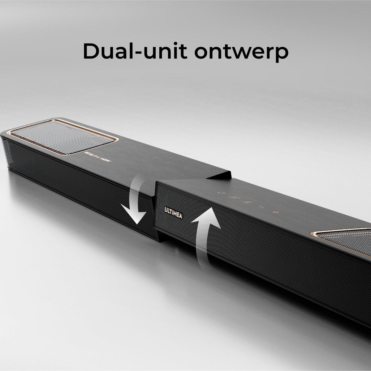 De geïntegreerde up-firing drivers maken gebruik van luchtvaartkwaliteit neodymiummagneten en 18-core spreekspoelen. Dit zorgt voor uiterst precieze hoogte-effecten en een breder hoogfrequent bereik, waardoor Dolby Atmos-content tot leven komt. Zo zit je letterlijk midden in de actie, met geluid dat je vanaf alle kanten omringt.