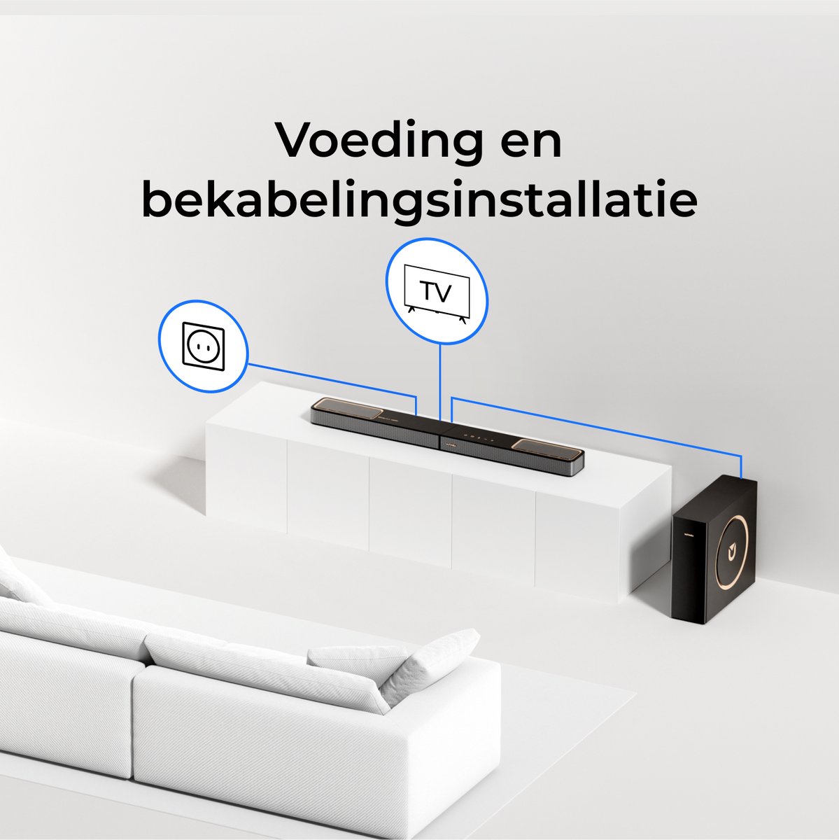 De Skywave F30 combineert front-facing drivers, twee innovatieve up-firing speakers en een stevige 5.25" bedrade subwoofer. Hierdoor ontstaat een indrukwekkende verticale geluidsdimensie, waardoor je het gevoel hebt midden in de actie te zitten - van donderende geluiden boven je hoofd tot subtiele raindrops rondom je. Je hoeft geen extra achterspeakers; het systeem creëert een volle, dynamische soundstage voor een ultieme kijk- en luisterervaring.