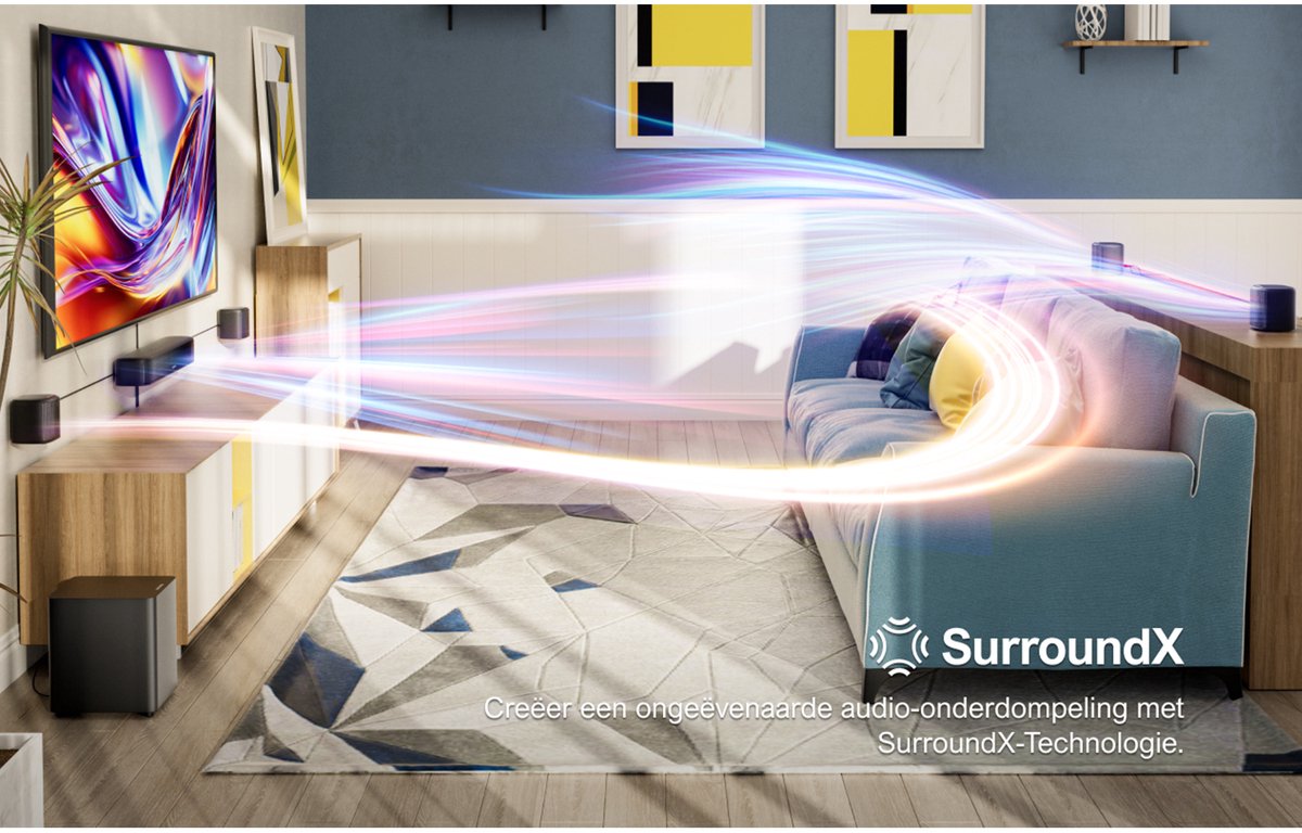 Ervaar een wereld van geluid die je visueel en auditief meeneemt naar de cinema. Dankzij geavanceerde technologieën en doordachte functies transformeer je simpel en snel je TV-ruimte in een ultiem entertainmentparadijs. Ontdek de kracht van surround sound en geniet van elke scène, elk nummer en elk spel met een nieuwe dimensie aan realisme.