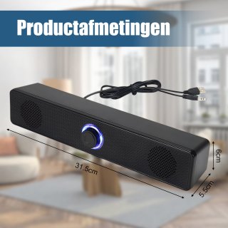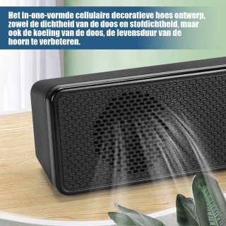 De soundbar heeft een modern, minimalistisch uiterlijk en een compact formaat (31,5 × 6 × 5,6 cm) dat moeiteloos op uw bureau, onder uw monitor of in een thuiskantoor past. Gemaakt van duurzaam kunststof in een tijdloos zwart, geeft hij uw werkplek direct een nette en professionele uitstraling.
