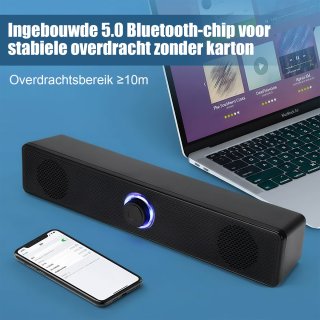Of u nu thuis werkt, studeert, gamet of onderweg bent: deze bedrade soundbar is licht, compact en gemakkelijk mee te nemen. Gebruik hem op kantoor, in de slaapkamer of neem hem mee naar kleine samenkomsten en buitenactiviteiten om overal van uw favoriete geluid te genieten.