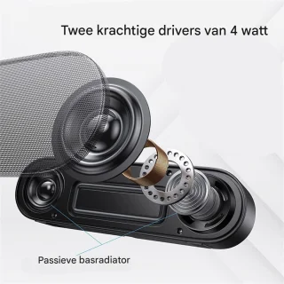 De hoogwaardige luidsprekerdrivers leveren een schoon, krachtig en gedetailleerd geluid. Duidelijke hoge tonen, een volle middenweergave en een prettige geluidsdiepte zonder hoorbare vervorming maken deze soundbar geschikt voor muziek, films, online vergaderingen en videogesprekken — ook wanneer er geen externe subwoofer aanwezig is.